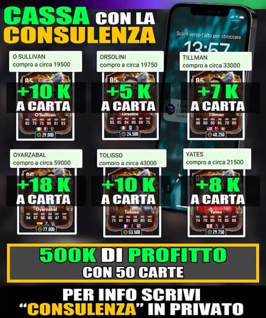 Parliamo adesso del prezzo di questa SBC, 68.000 crediti da CONSOLE e 69.000 crediti da PC. Essendo una SBC e potendo quindi abbattere il prezzo della sfida con i fodder e l’archivio, potrebbe essere uno dei migliori COC in rapporto qualità prezzo del suo campionato. Le sue alternative, infatti, potrebbero essere Jude Bellingham o Guti. È una SBC con un prezzo contenuto, ed ha un altissimo rendimento. Se sei in cerca di un COC de LALIGA allora Arda Guler fa proprio al caso tuo. Se non vuoi più preoccuparti di non avere fodder a disposizione per completare qualsiasi SBC, o i crediti per costruire la rosa dei tuoi sogni, allora c’è un modo facile e veloce per farlo. Con la CONSULENZA DEL PROFESSORE DI FUT, puoi fare tutto questo. Riceverai quotidianamente i consigli di compravendita direttamente dal Prof. e potrai così moltiplicare i tuoi crediti.