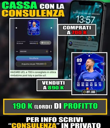 La SBC di Emilio Butragueño Icon TOTY ha un costo di circa 1.220.000 crediti su tutte le piattaforme. È senza dubbio una sfida costosa, ma il valore della carta è altissimo. Parliamo di un attaccante Icon TOTY con doppio PlayStyle+, statistiche offensive di livello assoluto e una giocabilità finalmente completa. Butragueño si candida a essere uno dei migliori ATT in un attacco a due, dove può sfruttare movimento, dribbling e finalizzazione senza dover reggere da solo il peso fisico del reparto. Il nostro consiglio è di valutare attentamente le risorse disponibili durante i TOTY, ma se cerchi un attaccante tecnico di altissimo livello, questa SBC può davvero rivoluzionare il tuo attacco. Voglio comunque ricordarti che non puoi basare la tua squadra solo sulle SBC, devi metterci dentro i top player. Puoi fare questo con la CONSULENZA DEL PROFESSORE DI FUT. Con questo percorso potrai triplicare i tuoi crediti così da poterti permettere qualsiasi giocatore tu voglia.