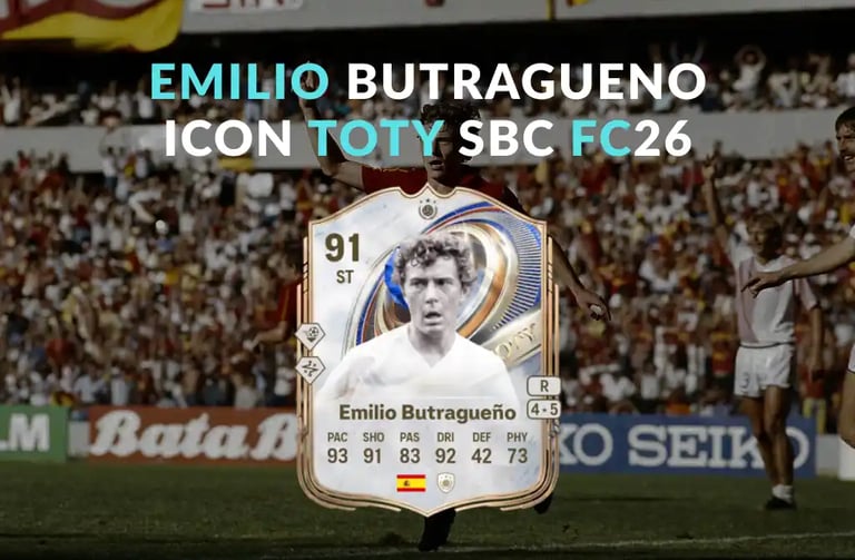 La SBC di Emilio Butragueño Icon TOTY SBC è uscita il 20 gennaio 2026 su EA SPORTS FC26 Ultimate Team.