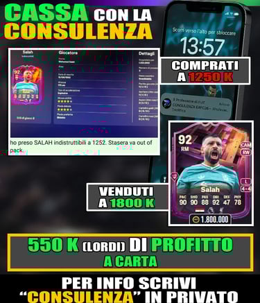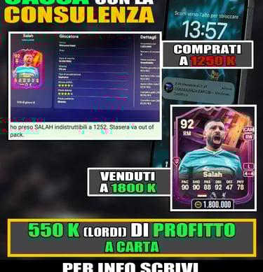 Le evoluzioni sono sempre molto interessanti e sotto vedremo quali sono i giocatori migliori da inserire in questa evo, ma ovviamente non puoi costruire una squadra solo con le evoluzioni. Hai bisogno di top player per essere competitivo. Ricorda che se vuoi mettere in squadra le carte più forti del gioco, c’è un modo facile per farlo. Con la CONSULENZA del PROFESSORE DI FUT hai il suo numero di telefono e ogni giorno ricevi i nomi, i filtri e i prezzi delle migliori carte da comprare per fare tanti tanti milioni su FC26.