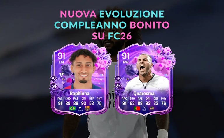 I migliori 5 giocatori da inserire nell’evoluzione Compleanno bonito su FC26 sono: Raphinha, Wilson, Claudia Pina, Hazard e Quaresma.
