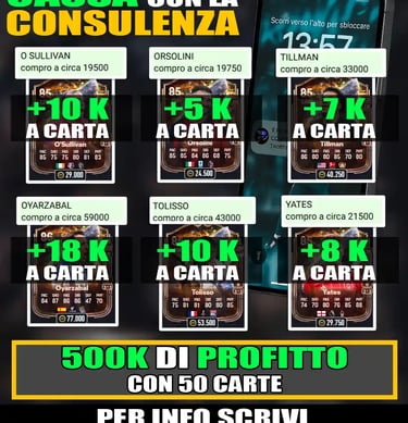 Le evoluzioni sono sempre molto interessanti e più in basso vedremo quali sono i migliori giocatori da mettere in quest’evo, ovviamente non puoi costruire una squadra solo con le evoluzioni. Devi metterci i top player. Ricorda che se vuoi comprare le carte più forti del gioco, esiste un modo facile per farlo. Con la CONSULENZA DEL PROFESSORE DI FUT hai il numero di telefono del Prof. e ricevi ogni giorno i nomi e i prezzi delle migliori carte da comprare per fare tanti milioni su FC.