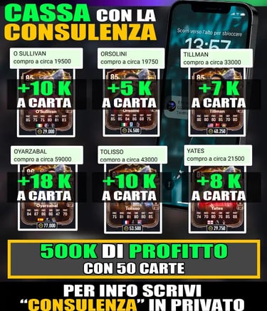 con la consulenza del prof. ricevi ogni giorno i nomi e i prezzi delle carte da comprare per fare i milioni.