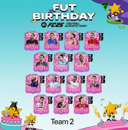 La Promo FUT BIRTHDAY entra nel vivo, nella serata di oggi, venerdΓ¬ 14 marzo 2025 EASPORTS introduce il Team 2 FUT BIRTHDAY. Anche il TEAM 2 Γ¨ composto da Icone, Hero e calciatori/calciatrici attuali, possiamo trovare tra loro: BECKHAM, DALGLISH e CAMPBELL tra le ICONE, tra gli HERO, saltano all'occhio SNEIJDER, GOVOU e SMOLAREK mentre tra i calciatori attuali VAN DIJK, KERR e ALVAREZ. La festa continua, con il ritorno di un trio fantastico, GERVINHO, IBARBO e DOUMBIA il celebre trio della Roma Γ¨ ora a disposizione di tutta la community di FIFA, introdotti inoltre, nuovi obiettivi a tema, tra i quali Γ¨ possibile ottenere appunto il celebre trio oltre a ALFONSO ESPINO (FUT BIRTHDAY), sono tornate azzerate le partite giornaliere con relativi premi, nuove SCR (sfide creazione rosa), in questβultime sono stati aggiunti YAYA TOURE' e KARIM ADEYEMI, tra le evo sono state aggiunte la Evo relative al celebre trio, e la evo Trequartista formidabile in grado di potenziare un CC, potenziandone le proprie abilitΓ offensive. La promo FUT BIRTHDAY, sta dimostrando che la festa continua, la community dovrΓ prepararsi quindi a quello che sarΓ dunque il gran finale di una promo senza dubbio di spessore.