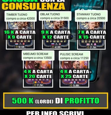con la consulenza del prof. ricevi ogni giorno i nomi e i prezzi delle carte da comprare per fare i milioni.