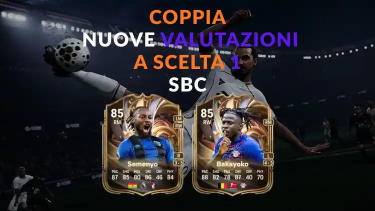 La nuova stagione di EA SPORTS FC26 Ultimate Team entra nel vivo, e come sempre EA continua a sperimentare nuove formule per rendere ogni sfida più interessante e strategica. Questa volta torna una dinamica che molti utenti già conoscono, ma che fa il suo debutto per la prima volta su FC26: la SBC Pick Duo. Parliamo di una Sfida Creazione Rosa che, una volta completata, ti offre una scelta esclusiva tra due giocatori speciali. Entrambi con versioni uniche, ruoli alternativi, statistiche differenti e playstyles che possono cambiare il volto della tua rosa. Una sola sfida, due profili molto diversi, ma solo uno potrà entrare nel tuo club: starà a te scegliere il giocatore che meglio si adatta al tuo stile e alla tua squadra. Questa modalità di scelta introduce un elemento in più rispetto alle classiche SBC: non si tratta solo di valutare il costo o il valore della carta, ma di prendere una decisione strategica. Preferisci un giocatore più completo e fisico? O uno tecnico e agile? Vuoi un titolare per la tua Weekend League o una carta da evolvere con calma? EA SPORTS con questa sfida mostra ancora una volta la volontà di puntare su personalizzazione, varietà e coinvolgimento della community, offrendo contenuti che spingono l’utente a ragionare in ottica futura, soprattutto con una power curve più lenta e una crescente importanza delle evoluzioni. Il pick prende il nome di Coppia Nuove valutazioni a scelta 1. Più in basso scoprirai se conviene completare questa SBC e chi scegliere tra i due giocatori. Prima però voglio ricordarti una cosa. Se vuoi avere sempre a disposizione tutti i crediti per completare qualsiasi SBC o comprarti i migliori giocatori di FC26, c’è un modo facile e veloce. Con la CONSULENZA DEL PROFESSORE DI FUT avrai a disposizione il numero di telefono del Prof. e lui ogni giorno ti dirà i nomi dei giocatori da acquistare per moltiplicare i tuoi crediti.