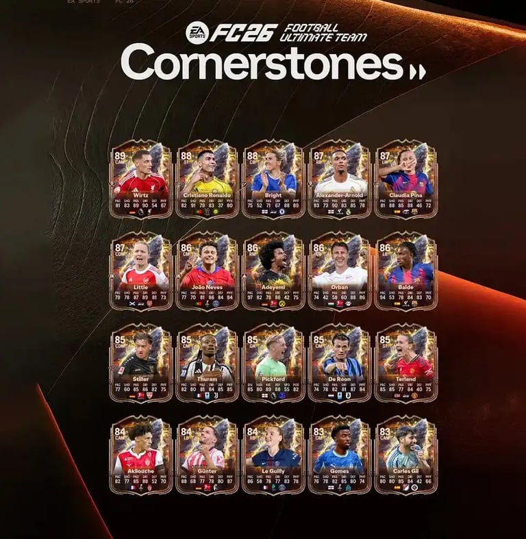 La promo Pilastri, in inglese CORNERSTONES su FC26, è una promo che mette al centro del gioco quei giocatori che fanno la differenza nei loro club, sia che sono leader, una bandiera del club oppure ancora dei giovani talenti. La promo non prevede degli aggiornamenti sui giocatori, oggi è uscito ZUBIMENDI SBC ma tratteremo questo giocatore nell’articolo dedicato. In questo team ci sono dei nomi molto interessanti, spiccano principalmente i centrocampisti con Tijjani Reijnders e Federico Valverde. La promo è sbarcata su FC26 il 26/09/2025 e durerà circa 2 settimane. Ci aspettiamo di vedere molti eventi live, e parecchi obiettivi.