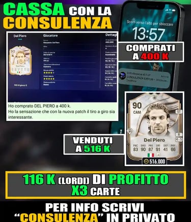 Per chi gioca più verticalmente o punta tutto sulla velocità , probabilmente non sarà la scelta migliore, ma per molti sarà un ottimo innesto. Voglio comunque ricordarti che non puoi basare la tua squadra solo sulle SBC, devi metterci dentro i top player. Puoi fare questo con la CONSULENZA DEL PROFESSORE DI FUT. Con questo percorso potrai triplicare i tuoi crediti così da poterti permettere qualsiasi giocatore tu voglia.