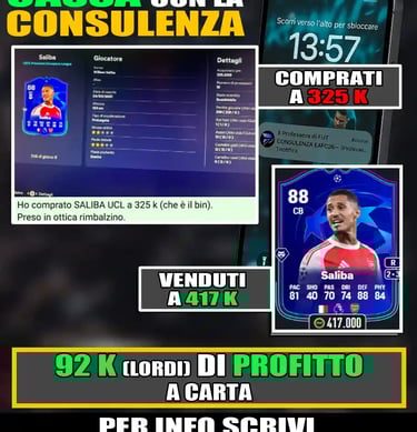 Vediamo quindi, in modo chiaro e diretto, cosa cambia realmente con la nuova patch v1.4.0 di FC26 e quali potrebbero essere le conseguenze sul modo di giocare Ultimate Team nei prossimi giorni. Voglio inoltre ricordarti che per avere i crediti per completare qualsiasi SBC che esce o comprare i top player per la tua rosa, allora sei nel posto giusto. Con la CONSULENZA DEL PROFESSORE DI FUT sarai in grado di sfruttare la compravendita per fare milioni di crediti. Con questo percorso avrai a disposizione il numero di telefono del Prof. e riceverai ogni giorno i nomi dei migliori giocatori da acquistare per triplicare i tuoi profitti.