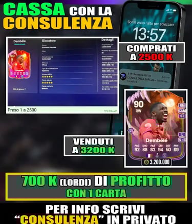 È una promo che premia chi conosce la storia del calcio e vuole portarla in campo su FC 26 Ultimate Team. Vuoi le carte più forti di questa promo subito nella tua squadra? Puoi averle in modo facile. Grazie alla CONSULENZA DEL PROFESSORE DI FUT puoi fare tantissimi milioni di crediti e comprare le carte più forti del gioco.