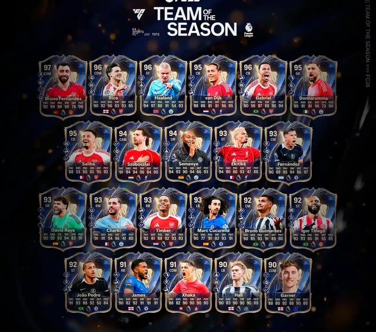 La squadra TOTS Premier League include alcuni dei giocatori più forti di tutta FC 26, tra cui: