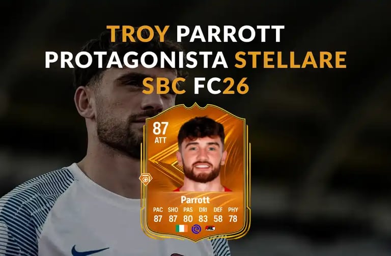 In un momento in cui ogni upgrade puΓ² fare la differenza allβinterno della tua rosa su EA SPORTS FC 26 Ultimate Team, lβarrivo di nuove SBC rappresenta una delle occasioni piΓΉ interessanti per migliorare il proprio team senza dover ricorrere necessariamente al mercato. E oggi, i riflettori si accendono su una carta speciale, dedicata a uno dei nuovi protagonisti del panorama calcistico europeo: Troy Parrott Protagonista Stellare, attaccante dellβAZ Alkmaar, arriva con una nuova versione SBC che promette velocitΓ , finalizzazione e un mix letale di Playstyles perfetti per chi cerca un'alternativa economica, ma concreta, nel cuore dellβattacco. Il contenuto rientra nellβevento Protagonisti Stellari di FC26, promosso da EA Sports come parte delle iniziative speciali dedicate alle competizioni europee e ai nuovi talenti. E Parrott, con la sua carta Ultimate Team ricca di caratteristiche interessanti, si candida a essere una valida opzione per rinforzare il reparto offensivo senza svenarsi. Anche se il suo valore in crediti Γ¨ contenuto, questo attaccante irlandese puΓ² sorprendere molti con statistiche solide e Playstyles altamente competitivi, che lo rendono pericoloso sia come titolare sia come arma dalla panchina. Insomma, una carta che potrebbe riservare sorprese. Scopriamo insieme tutti i dettagli di questa nuova SBC su FC26, tra statistiche, ruoli, valutazione del prezzo e le sfide necessarie per portarlo nel tuo club. PerΓ² prima devo ricordarti che se vuoi avere sempre i tuoi crediti pronti per acquistare qualsiasi giocatore tu voglia sul mercato o completare tutte le SBC migliori, conosco un modo che fa al caso tuo. Con la CONSULENZA DEL PROFESSORE DI FUT potrai fare tutto ciΓ². Avrai inoltre a disposizione il numero di telefono del Prof. che quotidianamente manderΓ aggiornamenti sui migliori giocatori da acquistare per fare milioni di crediti.