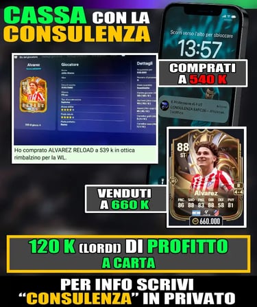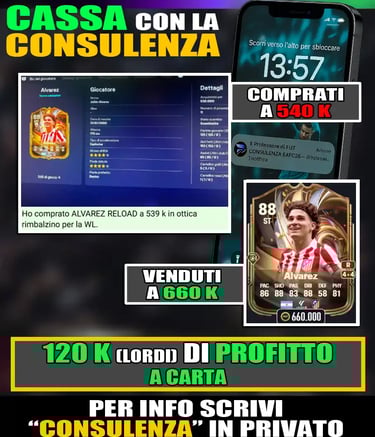 Se stai cercando un numero 9 potente, con ottime finalizzazioni e una presenza costante nell’area avversaria, Gyökeres è un nome da tenere d’occhio. In alternativa, potresti valutare altre punte forti come Darwin Núñez Thunderstruck o Alexander Isak, ma entrambi costano di più o sono meno strutturati fisicamente. Il nostro consiglio? Se hai una squadra Premier e ti manca un bomber dominante fisicamente, vale la pena sbloccarlo, ma solo se non hai altri piani di investimento per il Black Friday. Non possiamo comunque basare le squadre solo sulle SBC che escono. Bisogna inserire all’interno delle rose i top player, e per fare questo hai bisogno di crediti. Con la CONSULENZA DEL PROFESSORE DI FUT avrai la possibilità di ottenere quotidianamente informazioni sui nomi dei migliori giocatori da comprare per triplicare i tuoi crediti su FC26, insieme a tantissimi consigli utili per il mondo FUT.